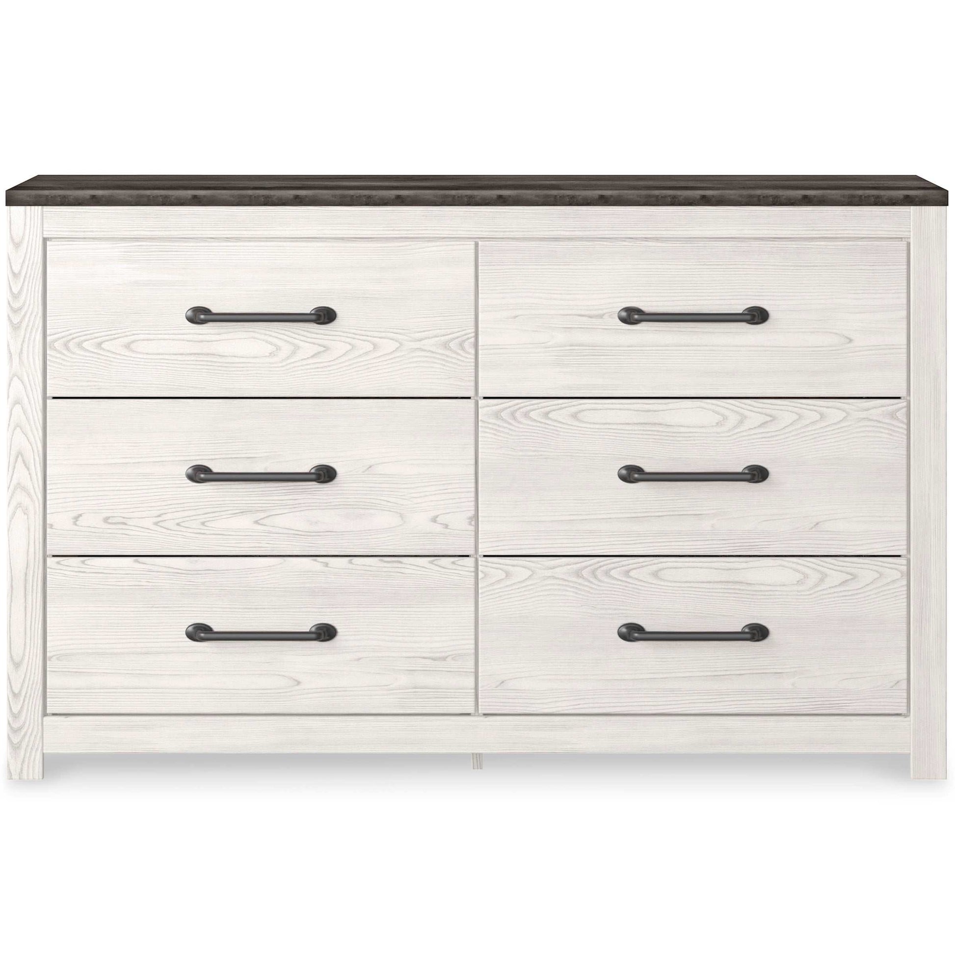 Cool, clean, and casually modern. This dresser and mirror’s wispy whitewash and gray finish set the tone for your calming sanctuary. Large linear pulls add dimension and authenticity. Six smooth-gliding drawers neatly accommodate your bedside needs.