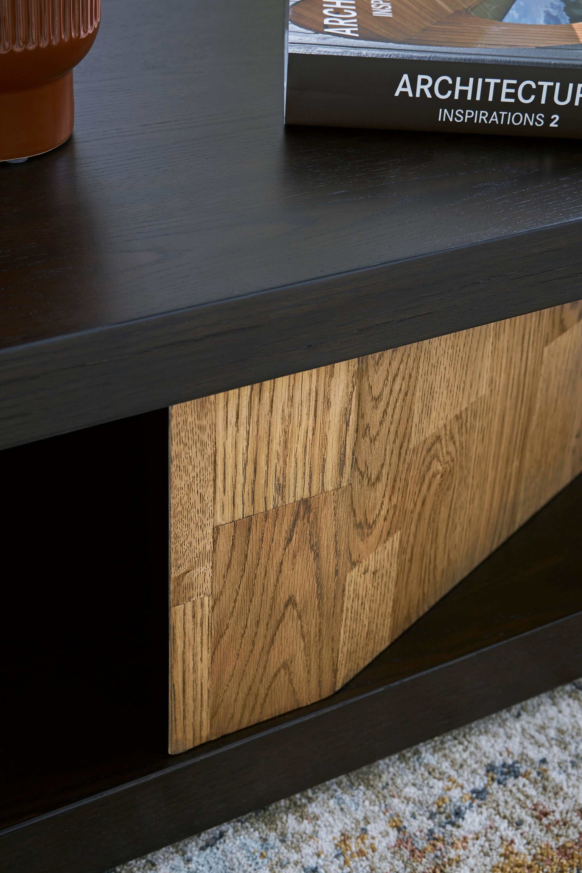 - Dark warm brown and light natural oak finish