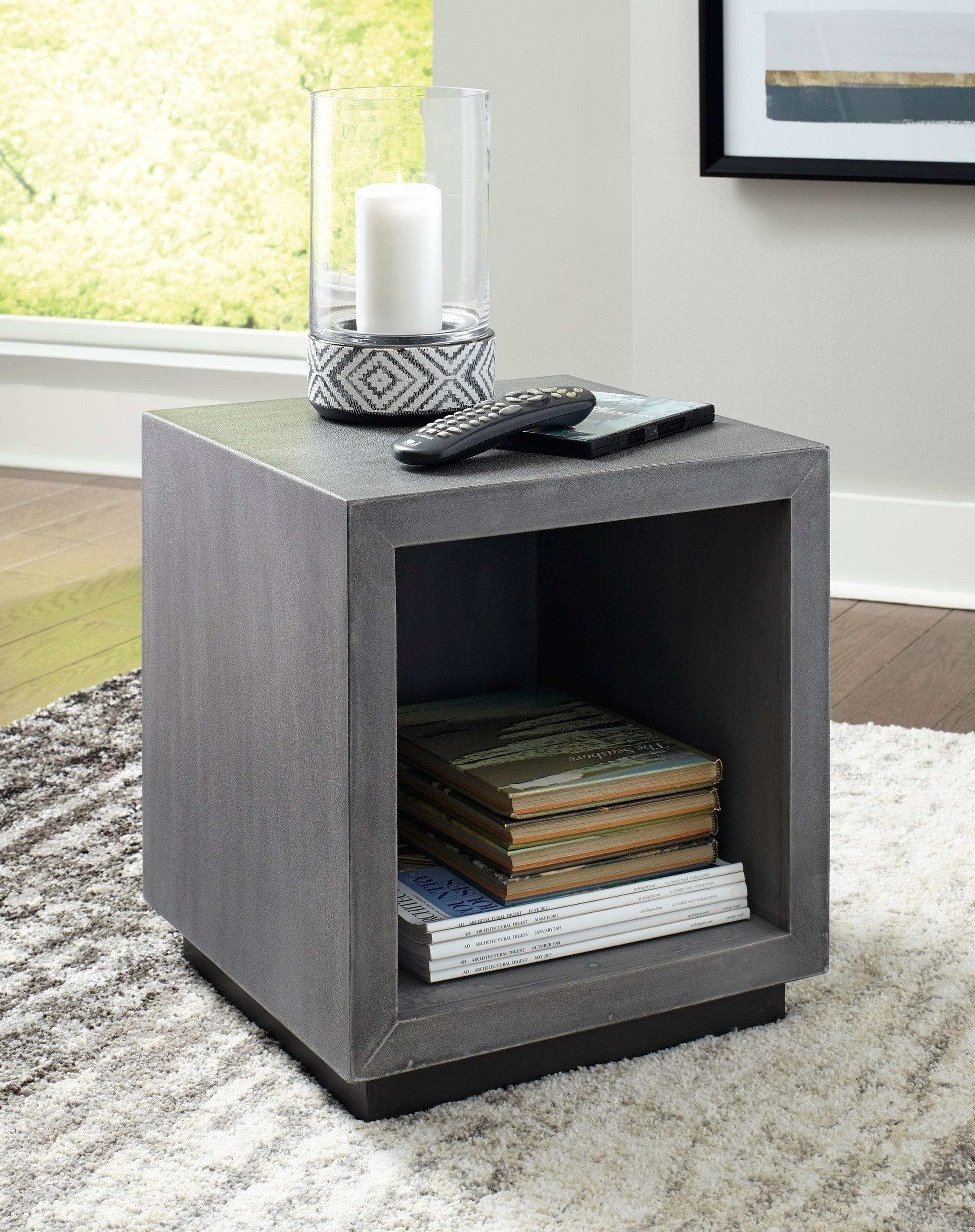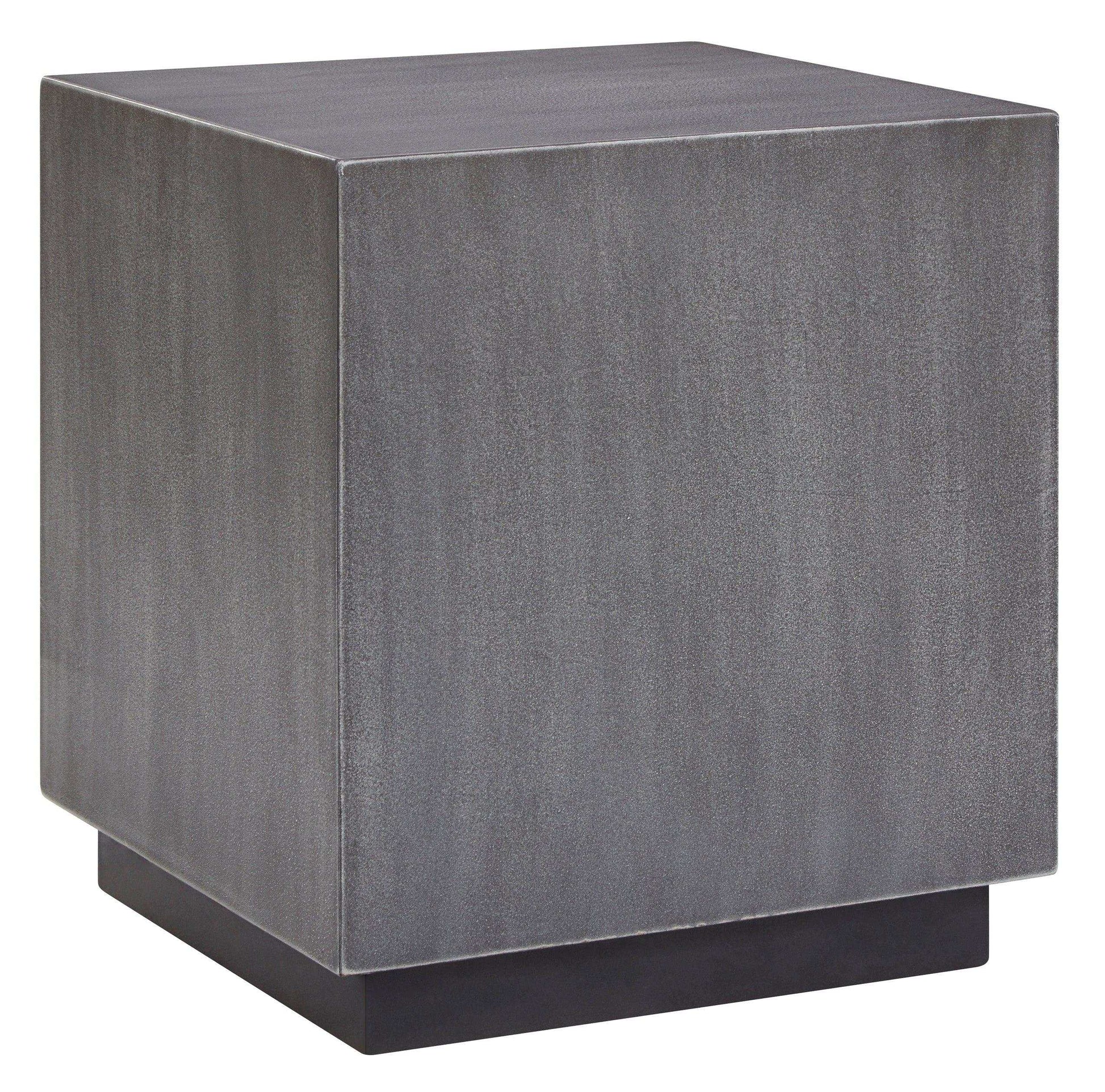 Simple structures make for the coolest designs. Uncomplicated and straightforward in its presentation, this accent table brings urban sophistication to your space with a faux concrete finish and black base. Open on one side for storage, this piece adds an industrial flair in an instant.