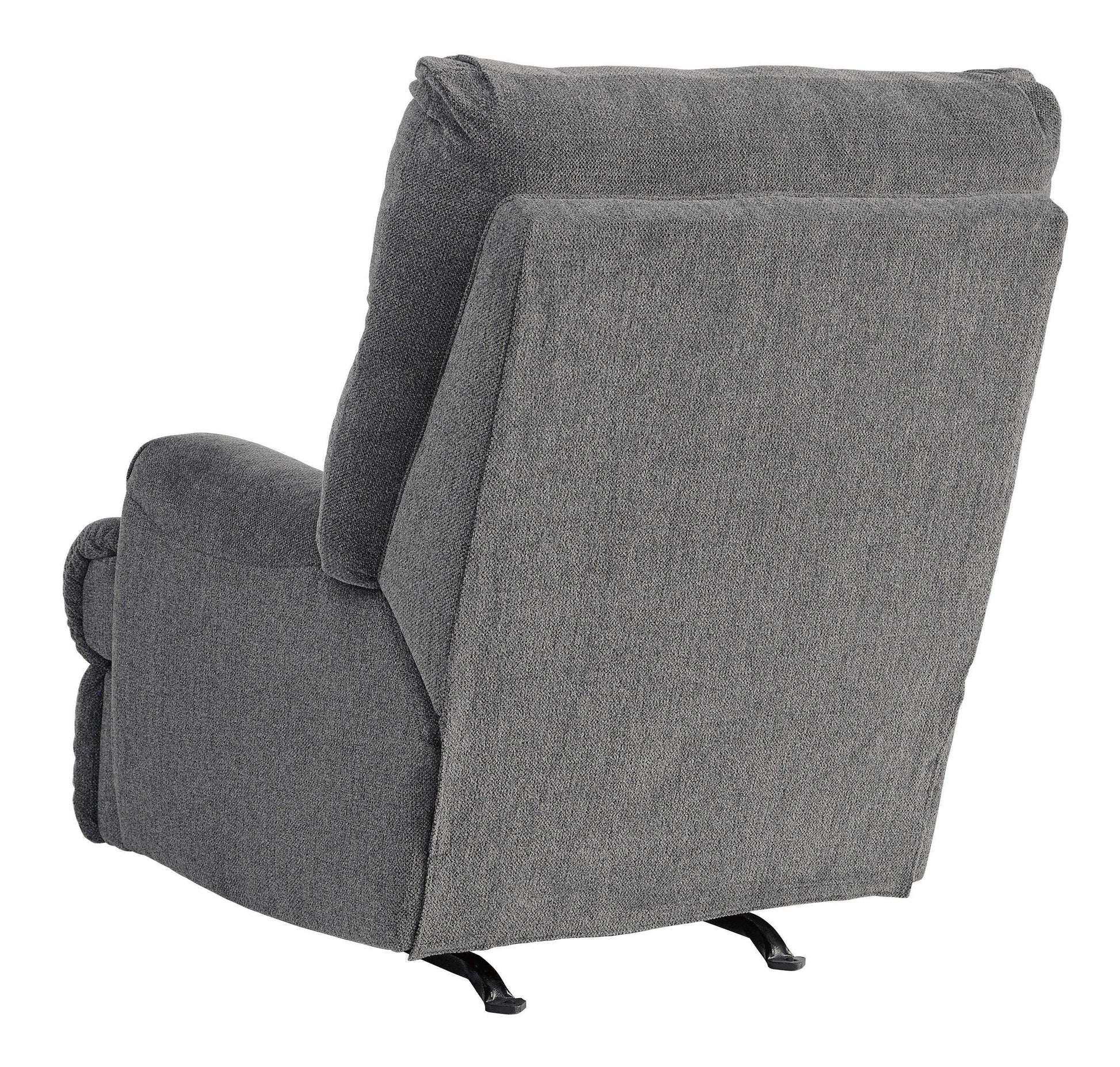 Roll out a cool look for your man cave or femme den with this indulgent recliner. Waterfall cushioning on the high chair is paired with a double-roll footrest for a high-style aesthetic that cradles you in comfort from head to toe. Tweed-weave neutral upholstery is decadently soft and loaded with texture.
