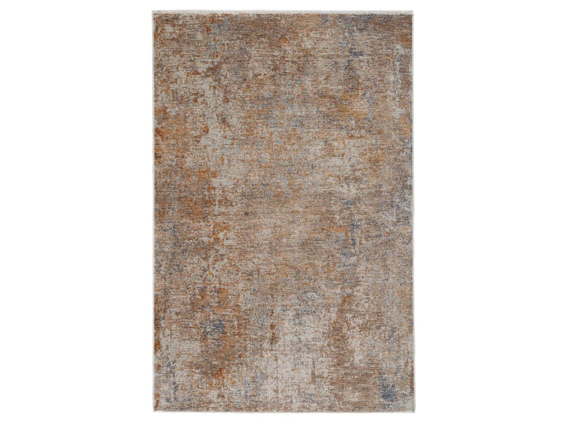 This area rug is a stellar study in color, movement and texture. Featuring a watercolor abstract effect in shades of cream, orange, brown, gray and blue, this vibrant rug makes a statement wherever it is displayed.