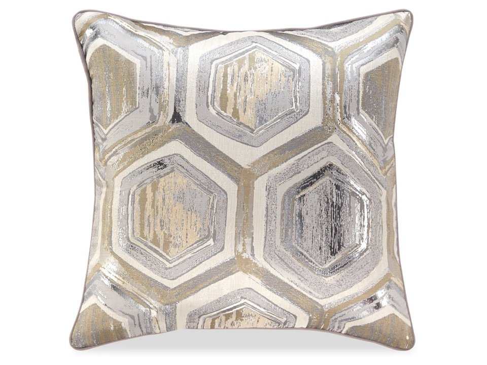 Bring an effortlessly cool and contemporary feeling to a space with this designer toss pillow. A hint of metallic sheen takes its neutral palette to a new level while the hexagon pattern is perfectly on point.
