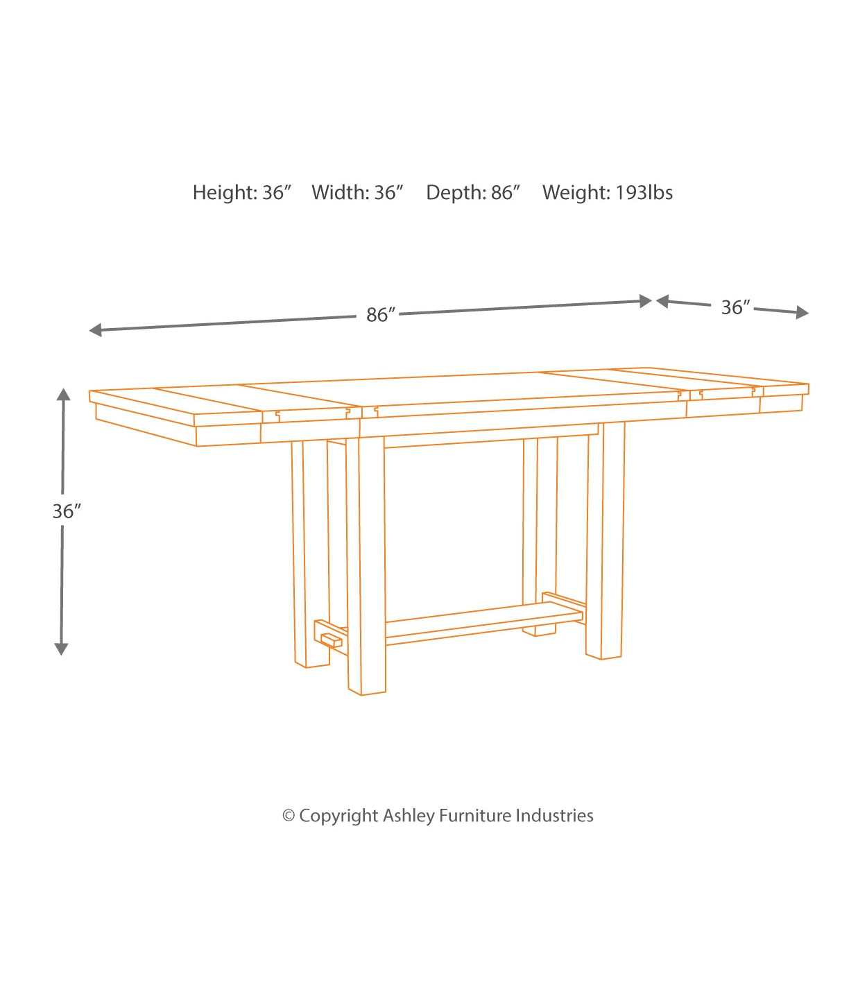 - Table: 36" W x 86" D x 36" H