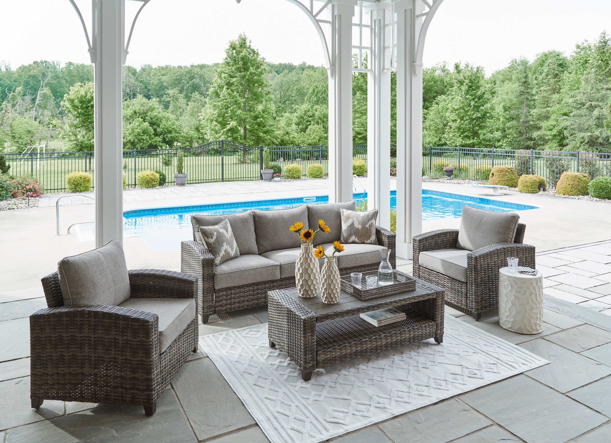 Luxurious comfort, meet outdoor living. This furniture set brings superior seating areas alfresco, taking cues from contemporary interiors with its versatile neutral hues and ample cushioning. Soak up the sun on summer days or cozy up with cocoa on winter nights—this set’s durable design allows you to enjoy chic seating through all seasons.