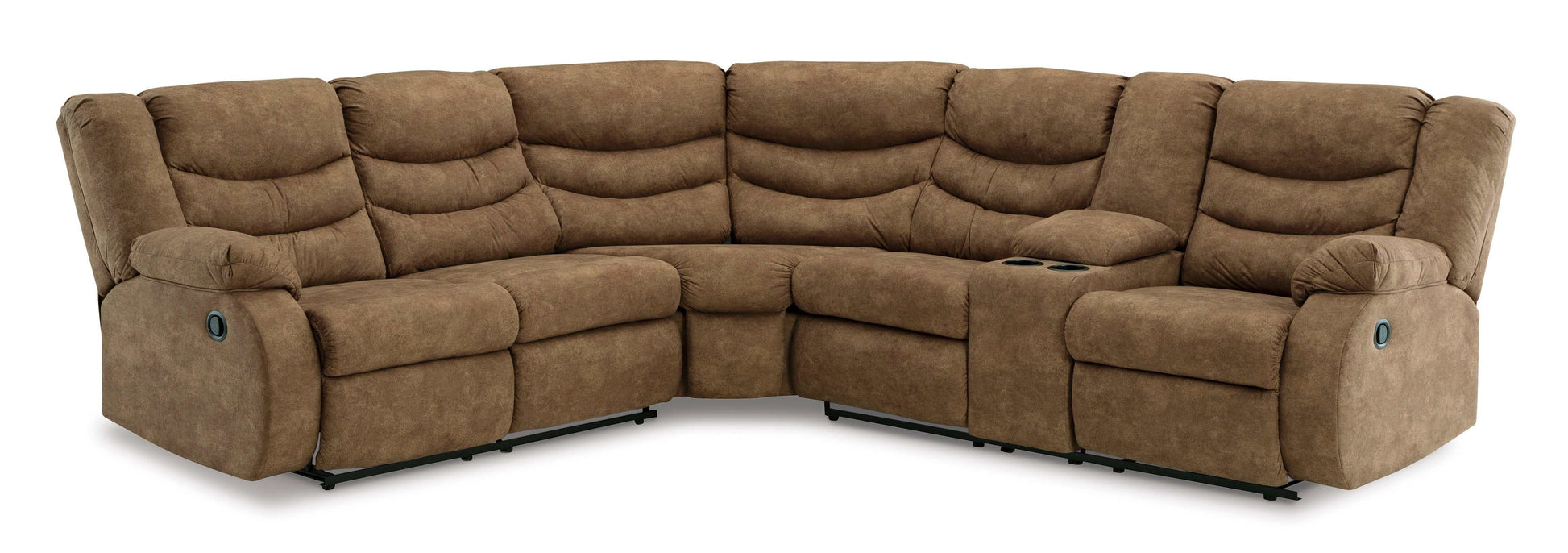 - 2pc Sectional w/ Console Includes: left-arm facing reclining loveseat with half wedge and right-arm facing reclining loveseat with half wedge console