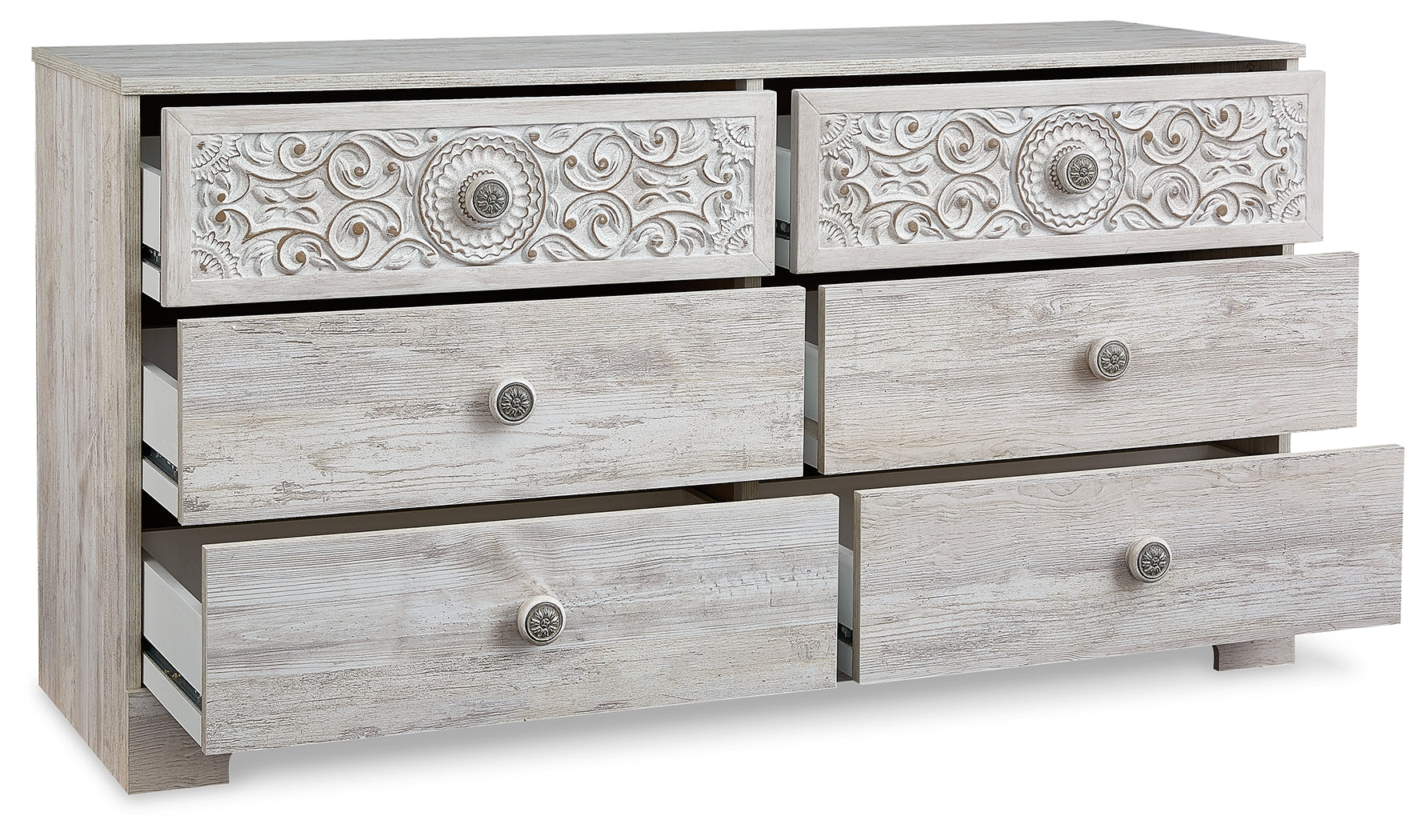If it's coastal chic or cottage quaint style you long for, this whitewashed dresser invites you to go to town. Its distinctive weatherworn finish conveys an easy-breezy sensibility, perfect for a restful bedroom retreat. Tastefully edited lines and medallion drawer pulls give this attractively priced dresser a high-end aesthetic.