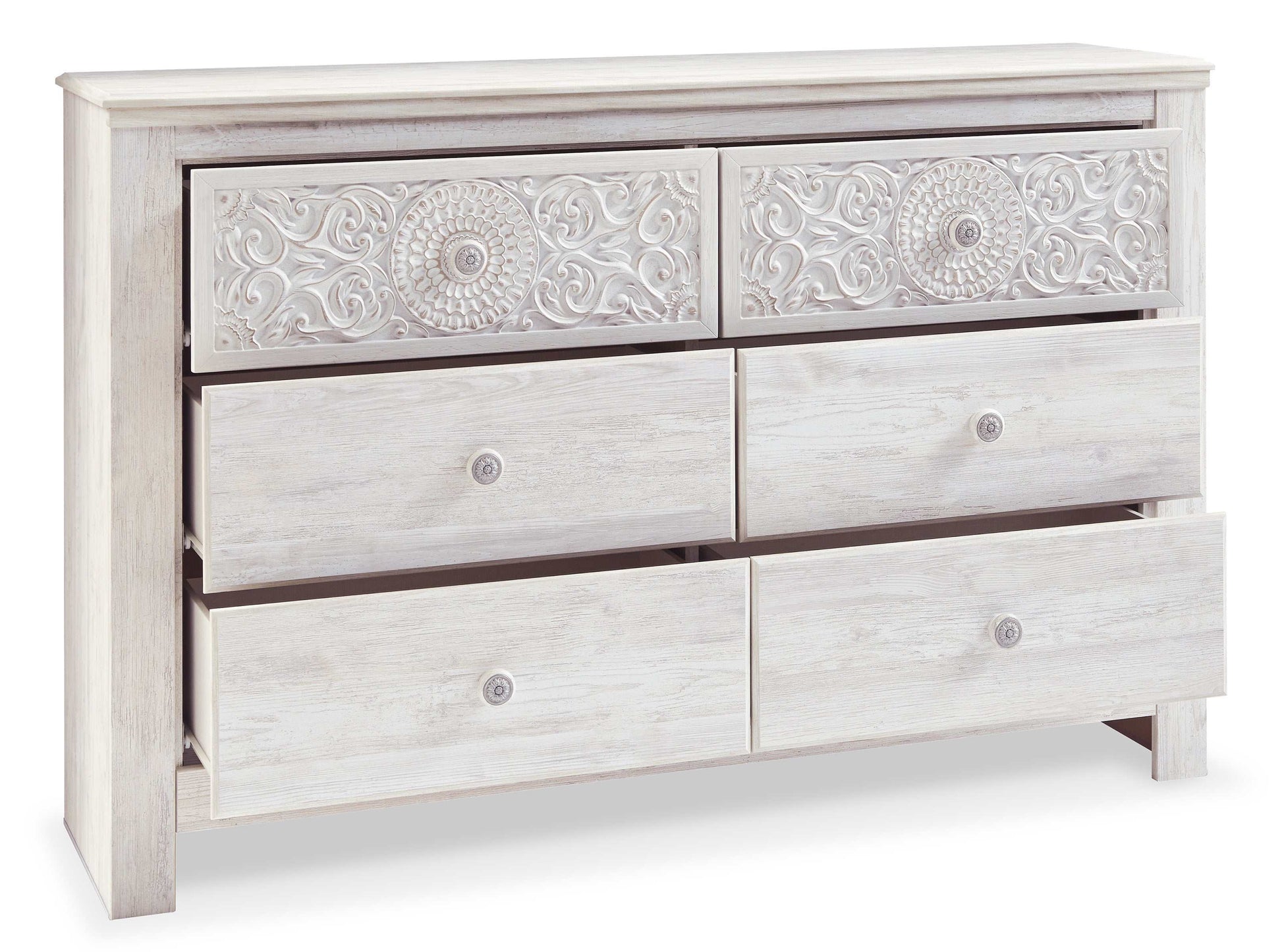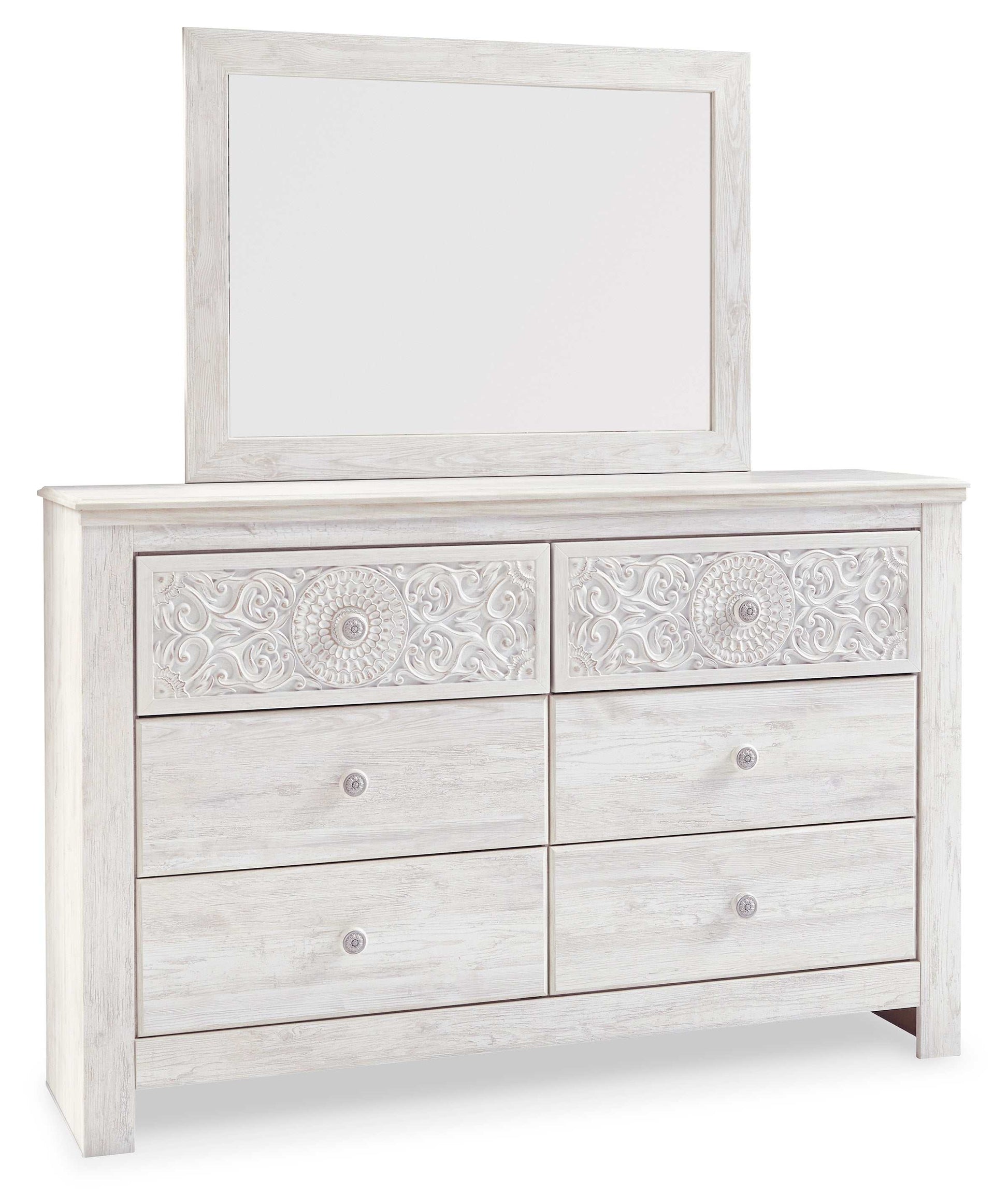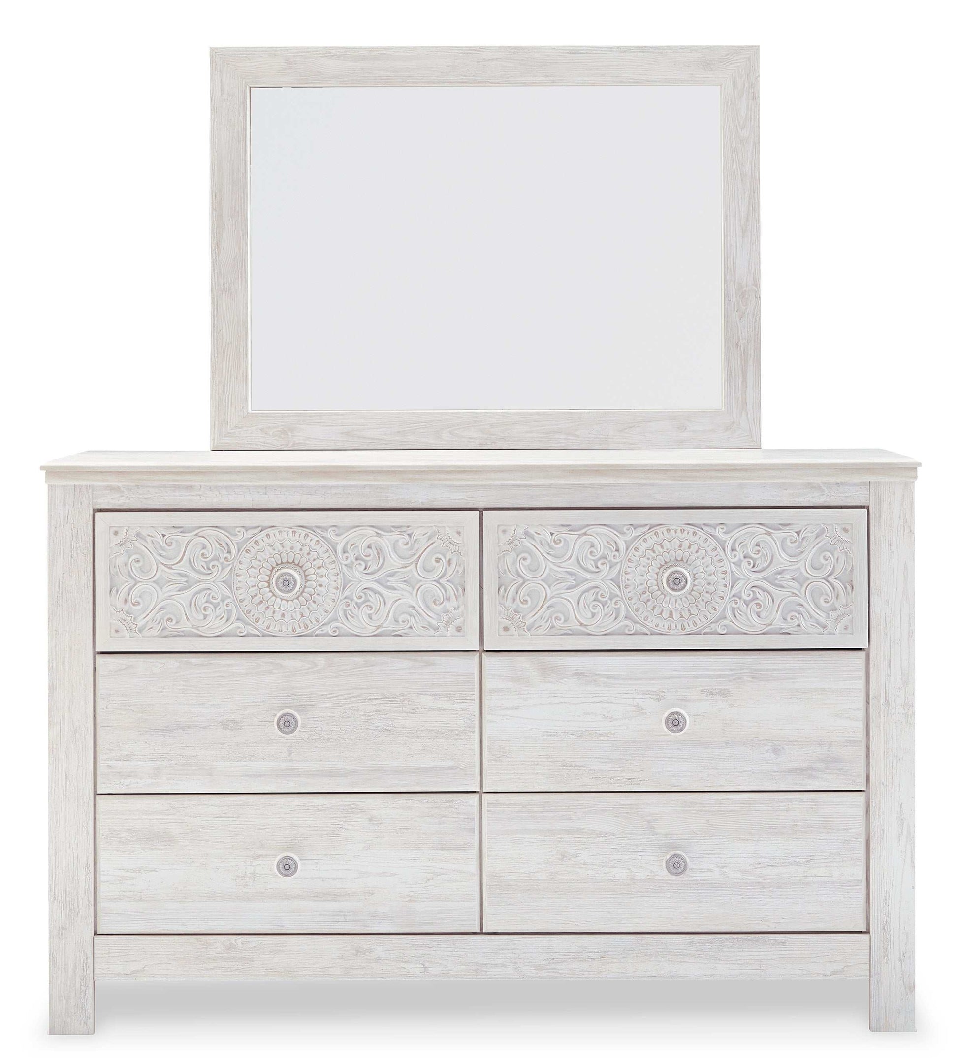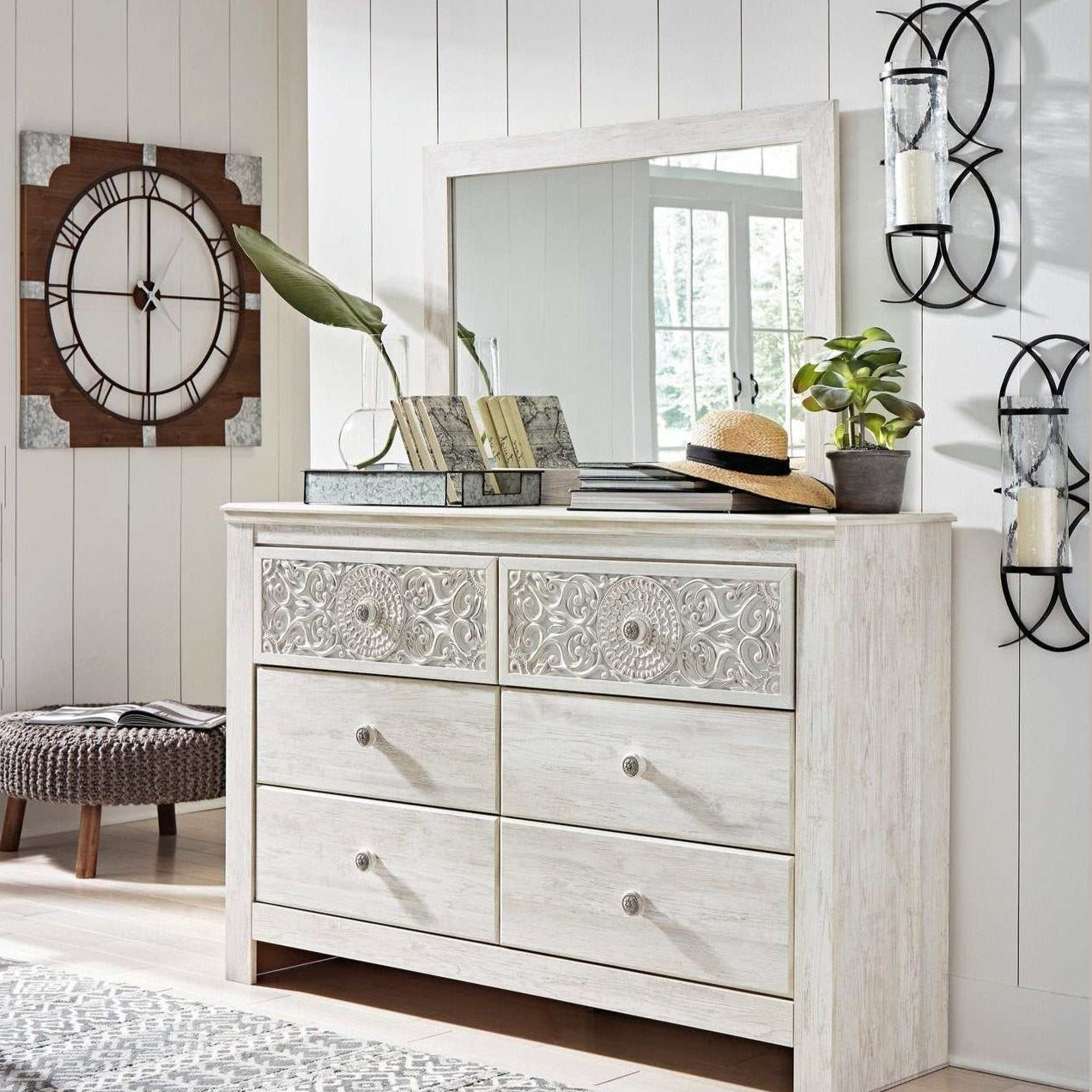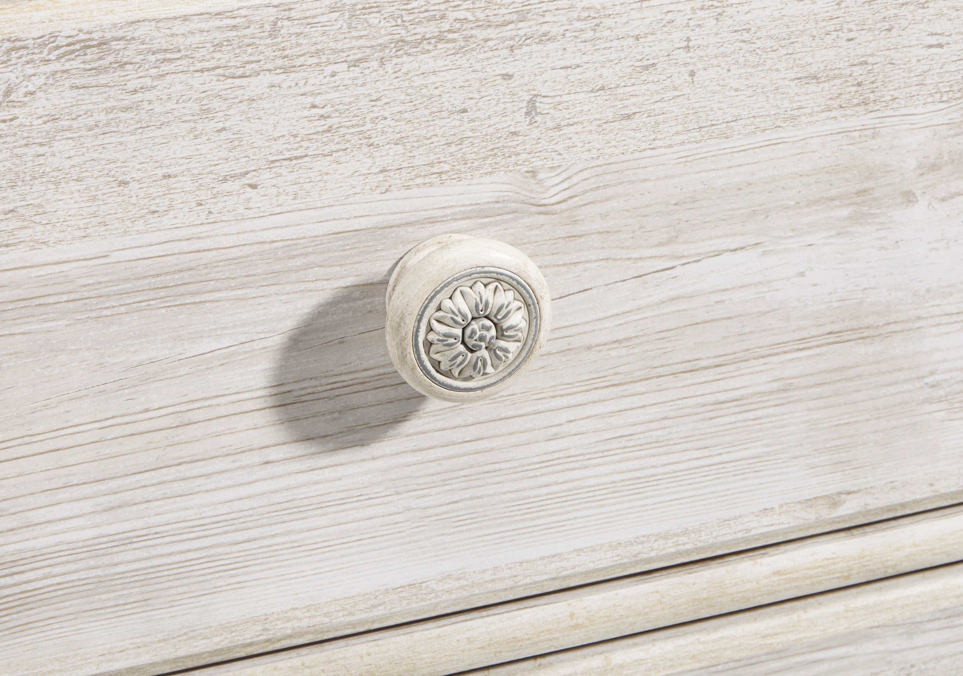 If it’s coastal chic or cottage quaint style you long for, this whitewashed dresser and mirror set invites you to go to town. Its distinctive weatherworn finish conveys an easy-breezy sensibility: perfect for a restful bedroom retreat. Tastefully edited lines and medallion drawer pulls give this attractively priced dresser a high-end aesthetic.