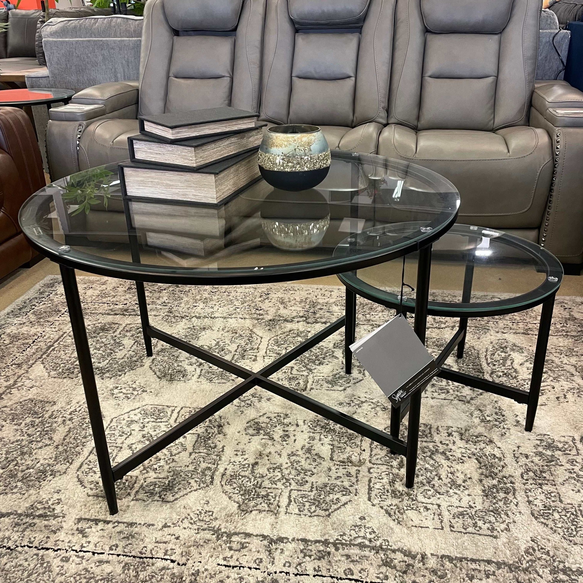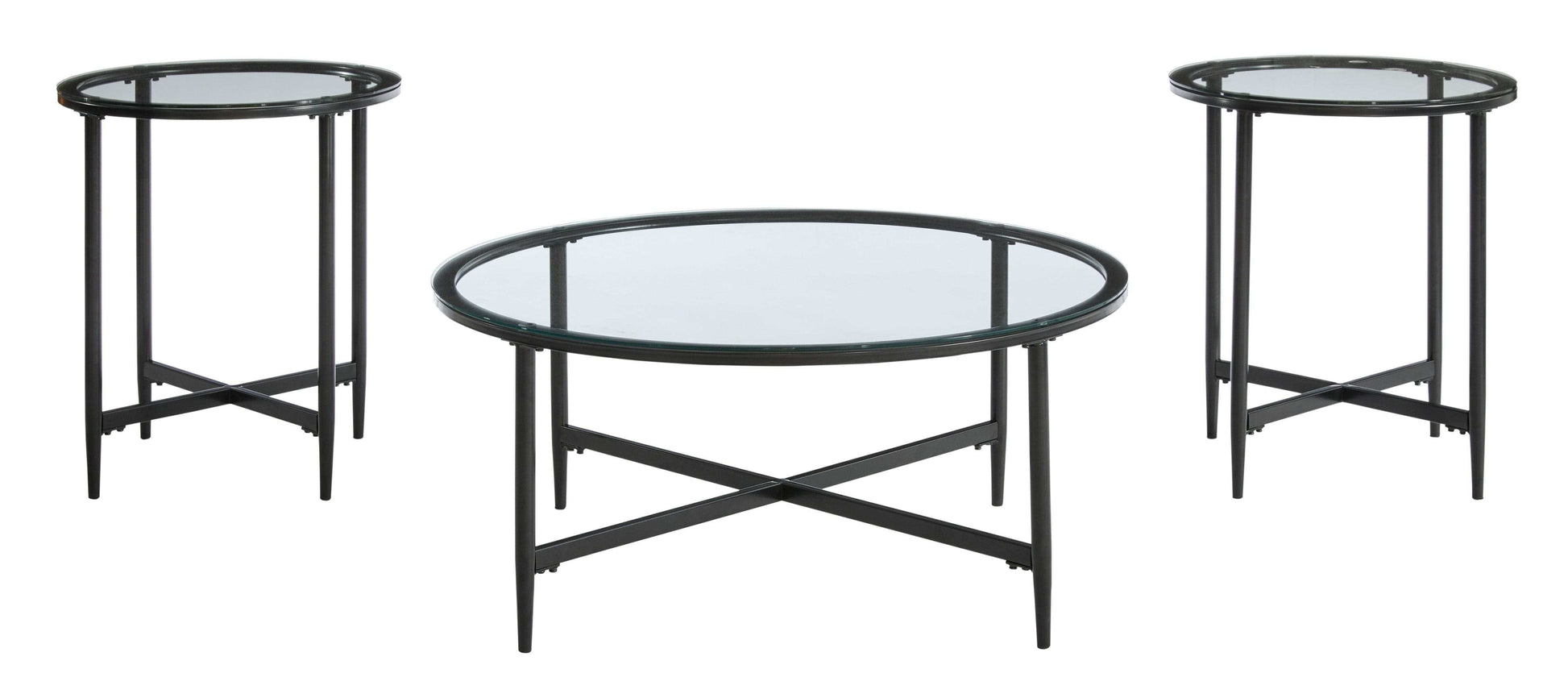 Stetzer Coffee Table 3pc Set Black Metal / Tempered Glass